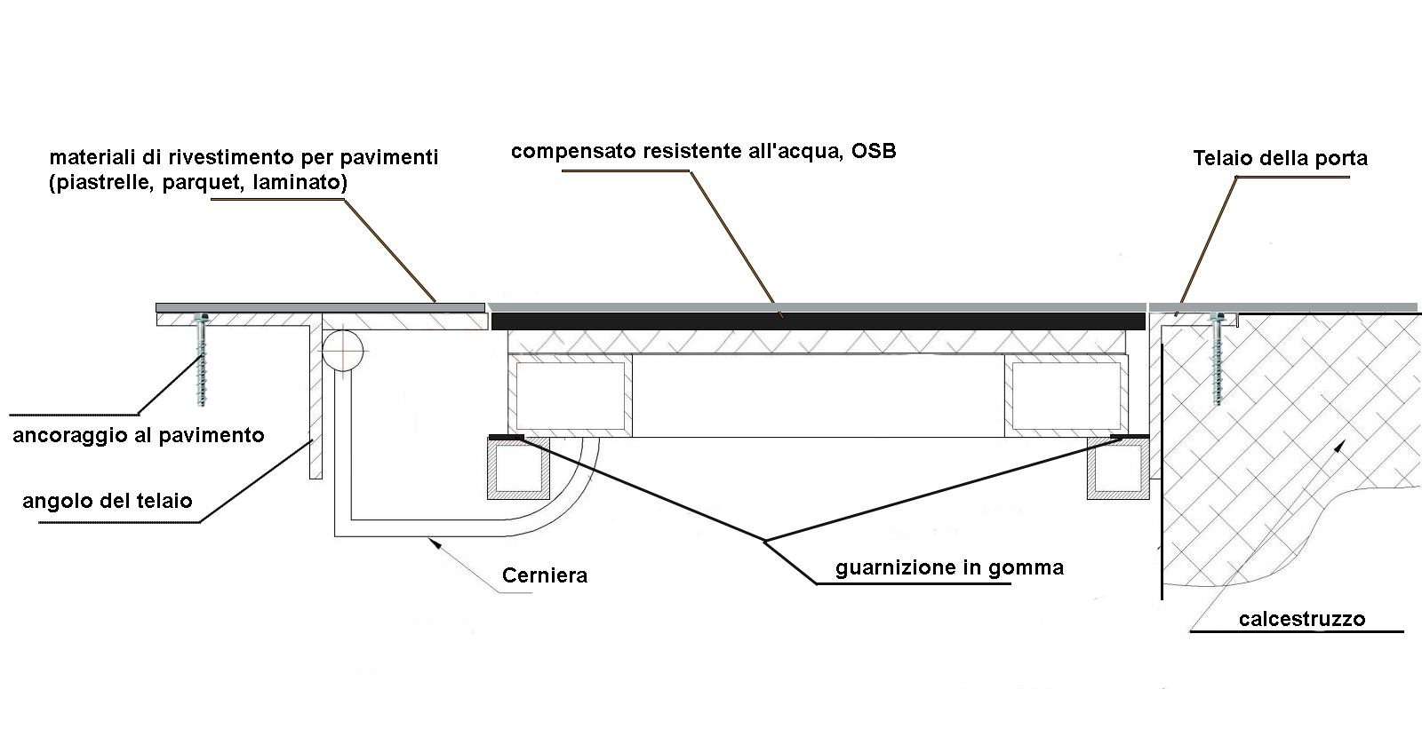 Attenzione! Si raccomanda vivamente di camminare sulla botola a pavimento solo dopo averla completamente installata con il rivestimento!!!
